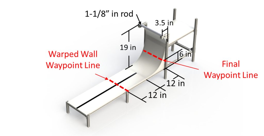 The warped wall is a curved wall that is 19” high. The robot must raise itself entirely 6” above the platform and remain there by grabbing onto the top of the wall.